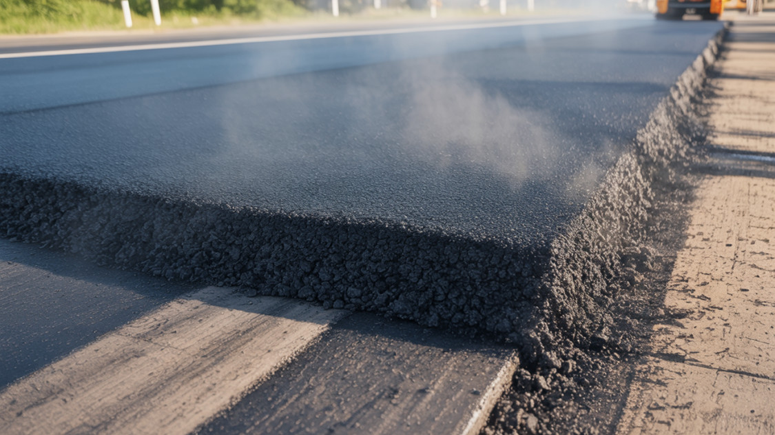- Friss aszfalt lerakása, mely 170 °C-on történik, közte akár 12-24 órás hűlési időre is szükség van.
